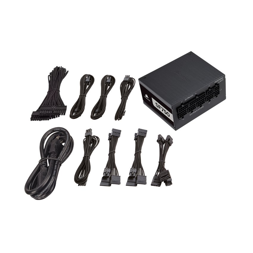 | Package contents | CORSAIR SF Series power supply unit AC power cord DC modular cable set DC modular cable storage bag Cable ties CORSAIR case badge User manual SFX to ATX adapter Important safety information | ||