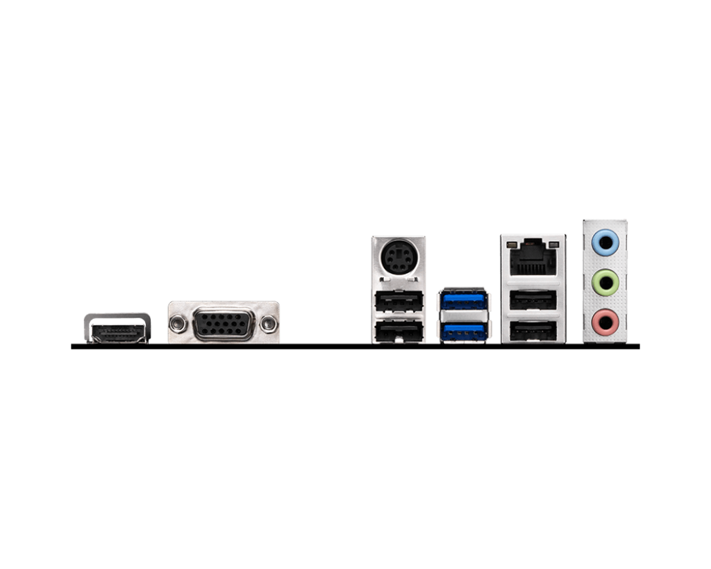 | Onboard Graphics | 1x HDMI™ Support HDMI™ 1.4, maximum resolution of 4K 30Hz* 1x VGA Support VGA, maximum resolution of 2048x1536 50Hz, 1920x1200 60Hz *Available only on processors featuring integrated graphics. Graphics specifications may vary depending on the CPU installed. |